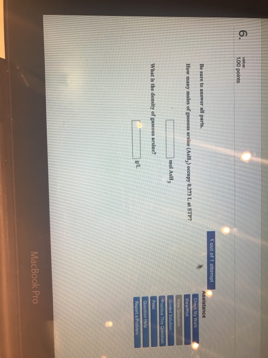 What mass of hydrogen chloride is needed to exert a pressure of 0.240 atmosphere in a 250 mL container at 37 °C? 3. The density of a gas at STP is 1.62 g L-1. What is the density at 302 °C and a pressure of 0.950 atmospheres? 4. ... Access Content