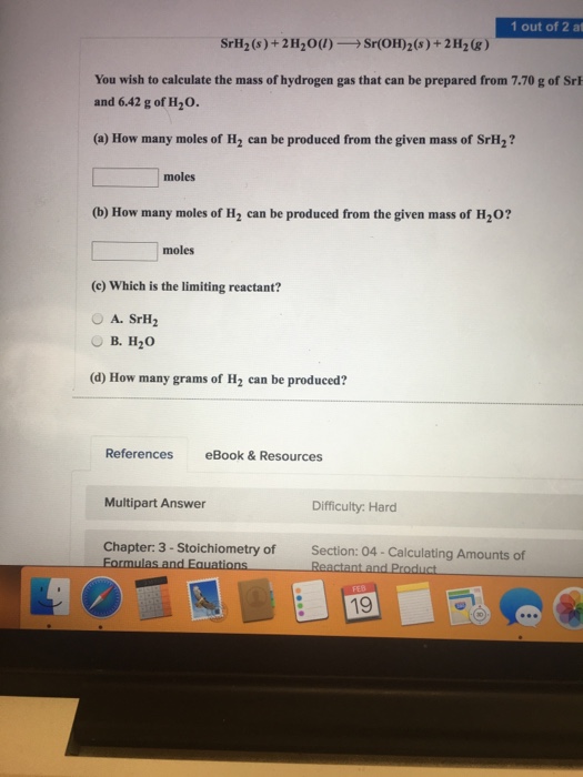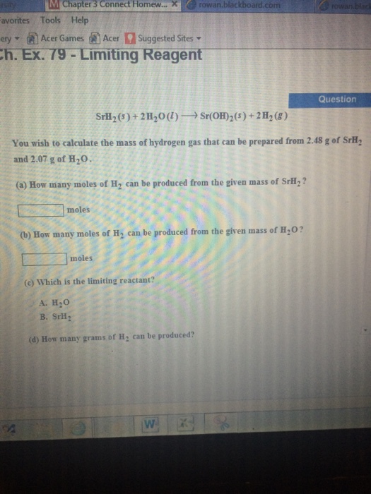 Answers to Selected Questions on ALE 5 Page 1 of 2 ALE 13. Stoichiometry: Mole-Mass Relationships You wish to calculate the mass of hydrogen gas that can be prepared from 5.63 g of strontium hydride and 4.80 g of water. a.) ... Read Content